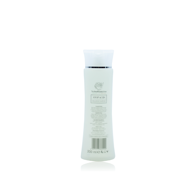 Soluzione tampone necessaria per bloccare il tempo di posa, in caso di improvvise sensazioni di bruciore o rossore dovute all’utilizzo di acidi.