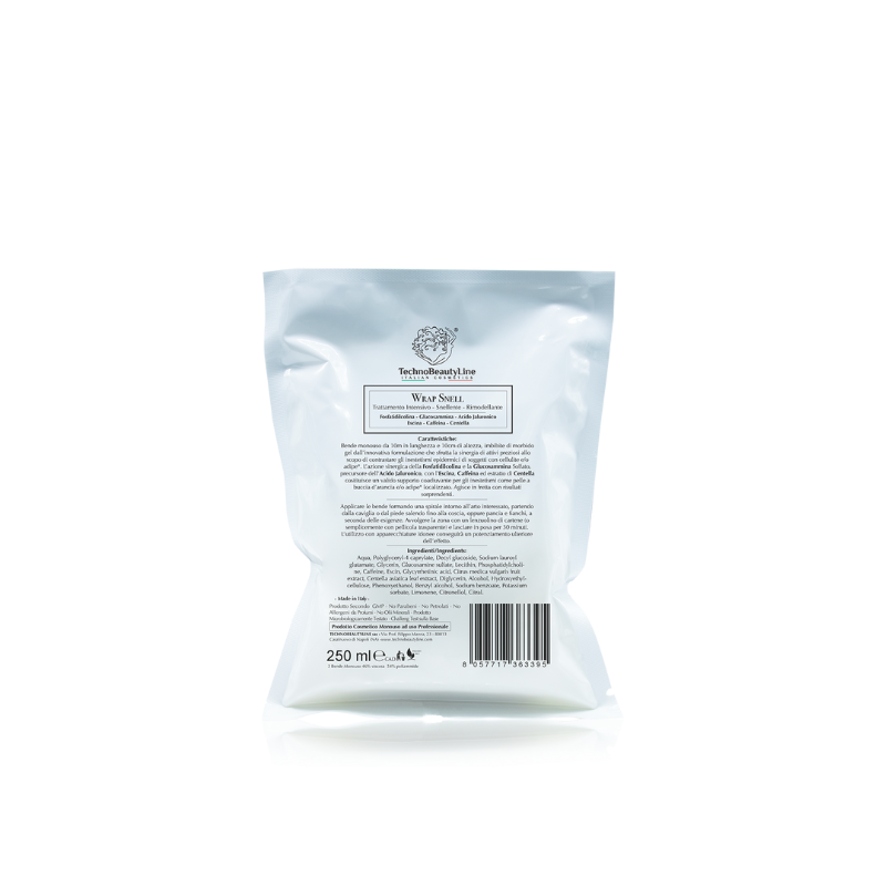 Bende monouso da 10m in lunghezza e 10cm di altezza, imbibite di morbido gel dall’innovativa formulazione che sfrutta la sinergia di attivi preziosi allo scopo di contrastare gli inestetismi epidermici di soggetti con cellulite e/o adipe. L’azione sinergica della Fosfatidilcolina e la Glucosammina Solfato, precursore dell’Acido Ialuronico, con l’Escina, Caffeina ed Estratto di Centella Asiatica costituisce un valido supporto coadiuvante per gli inestetismi come pelle a buccia d’arancia e/o adipe localizzato. Agisce in fretta con risultati sorprendenti.